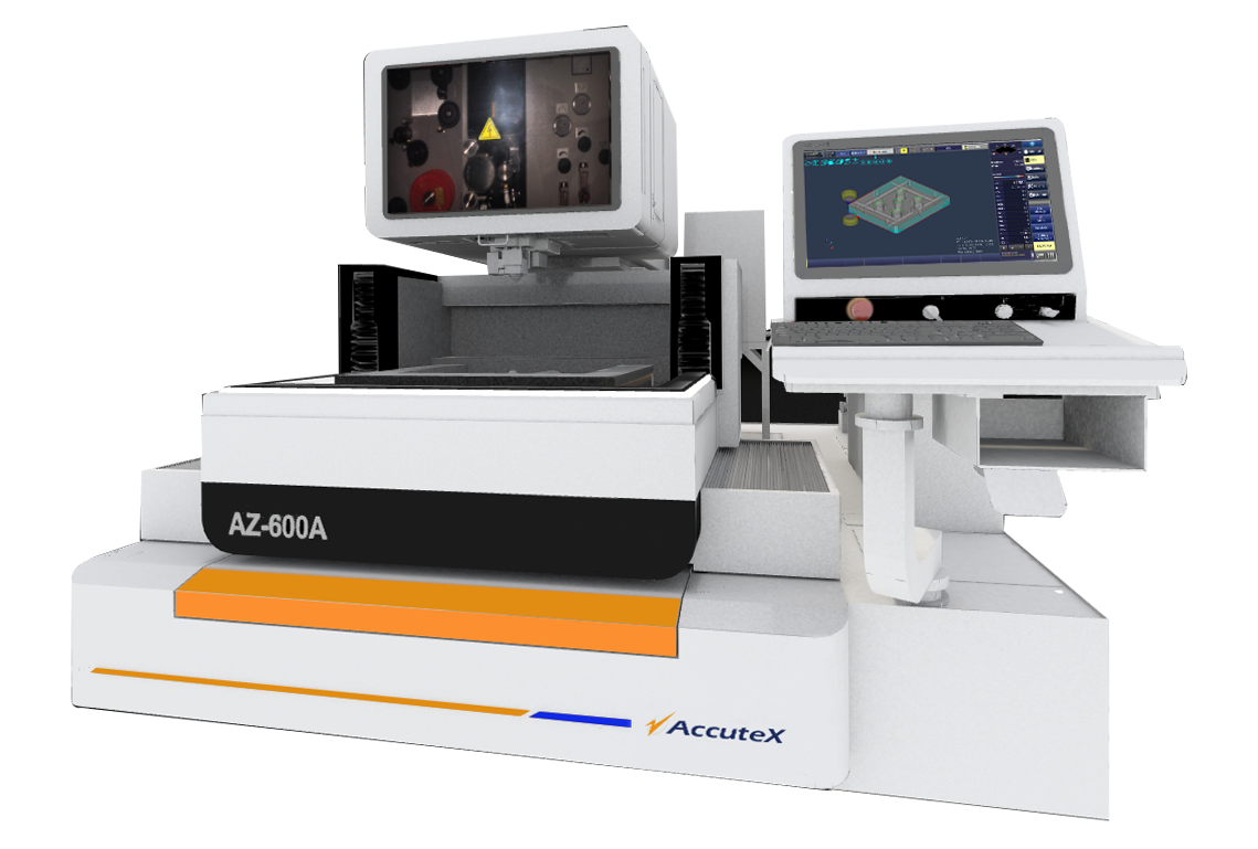 線切割放電加工機AZ-600,搭配自動廢料移除,省下需要人工的時間,同時也完成全自動化的最後一哩路。搭配新式尋邊,可在工件有水狀態下,準確地偵測工件位置,並將重現精度提升到3μm以內。